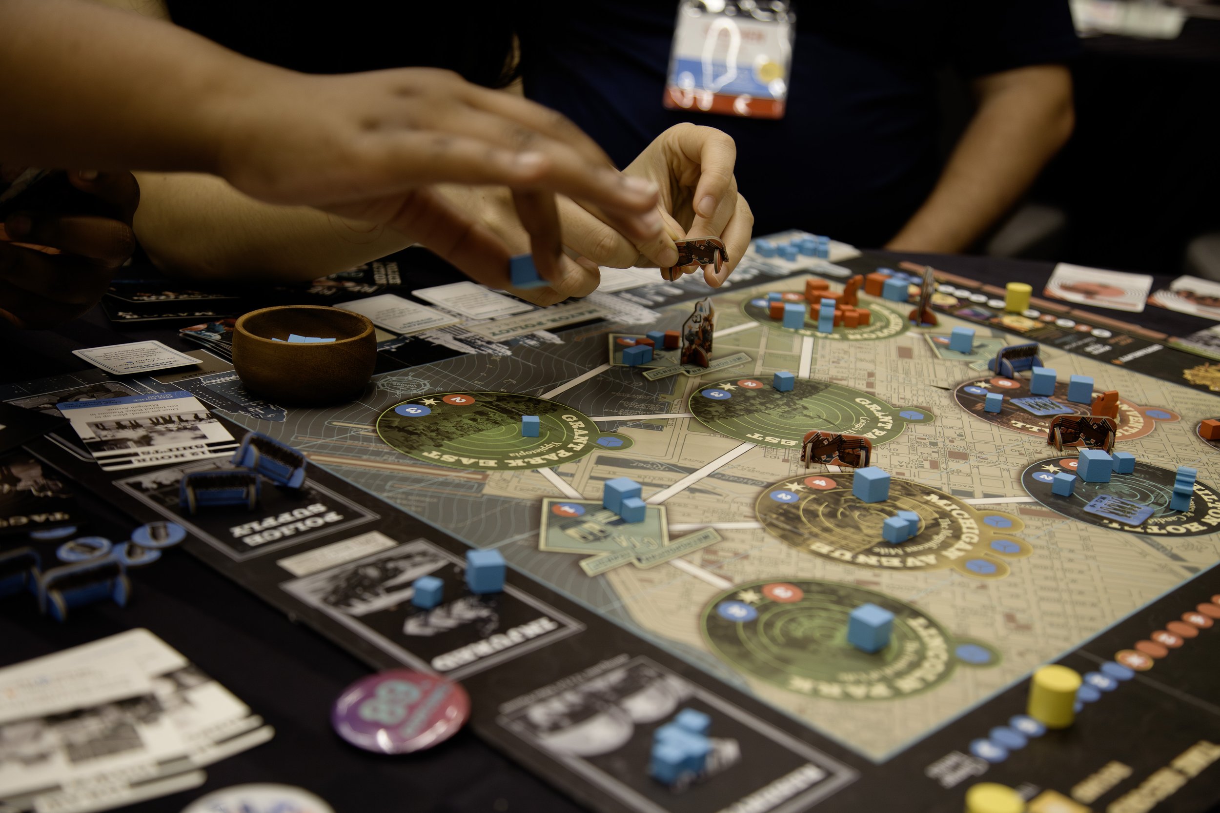 Players take the roles of either the Establishment or the Demonstrators in this fast-paced game of street battles and political maneuvers. Each side plays from two unique decks of action cards. The Establishment positions tactical forces and police platoons to coordinate mass arrests while working the convention floor. The Demonstrators can pivot from direct clashes to radical street theater. Their tactics can be reactive and unpredictable, allowing for wild cat-and-mouse chases across the tear-gassed avenues of groovy downtown Chicago.